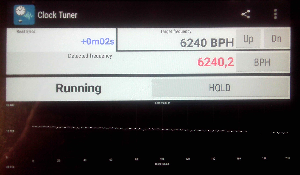 Но вот например приложение Cuckoo Cal, которым я обычно смотрю ходики "Маяк", показал себя с плохой стороны. При достаточно громком (и естественно стабильном) звуке показания прыгали туда-сюда, и "ровно" скажем 140 ударов в минуту показывали редко.
