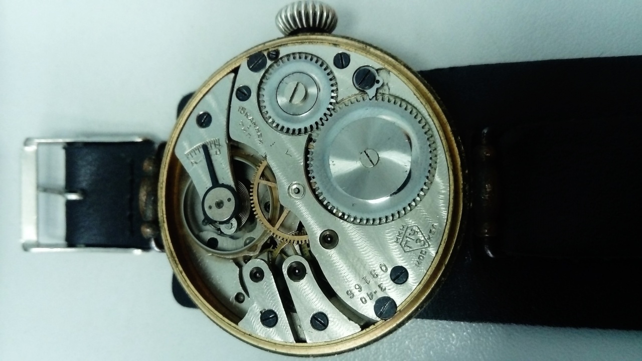 На механизме стоит слабо выбитое клеймо, как мне видится: "КУЙБ ЮТ". Что смог найти, возможно это "КУЙБЫШЕВСКАЯ ЧАСОВАЯ МАСТЕРСКАЯ САРАТОВСКОЙ МЕЖОБЛАСТНОЙ КОНТОРЫ ПО ТОРГОВЛЕ ЮВЕЛИРНЫМИ ИЗДЕЛИЯМИ И ЧАСАМИ, ДРАГОЦЕННЫМИ МЕТАЛЛАМИ И КАМНЯМИ «ЮВЕЛИРТОРГ» МИНИСТЕРСТВА ТОРГОВЛИ СССР ( – 1949)