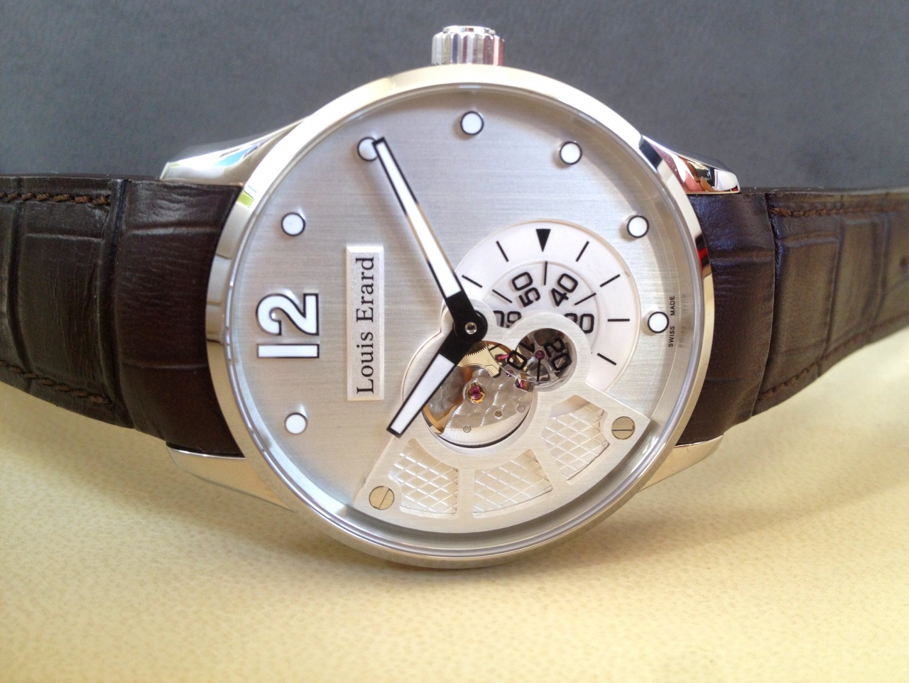 < < < [ручной завод] LOUIS ERARD 1931 ** open-heart цифер ** коричневая кожа > > >
