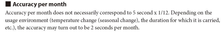 Cervantes верно описал. Точность HAQ часов обычно "плавает". Здесь нет линейной зависимости, как в обычном кварце. Ситизены могут за месяц до 2-х секунд по паспорту отстать, а затем нагнать (если честно, вот это приличная такая ложка дегтя к 5 секундному в год интервалу). Это смущает, потому что хочется иметь идеальное время на руках, а не +- пару секунд в месяц.
