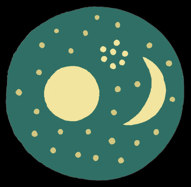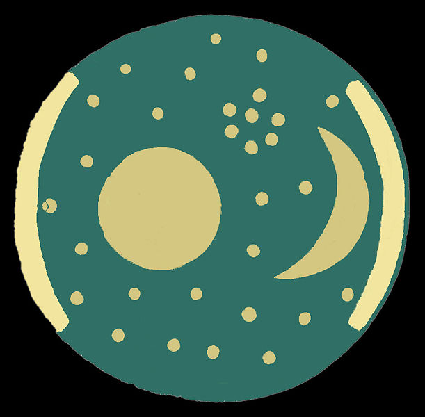 - Слева — Солнце, справа — Луна. По площади диска распределены 32 звезды, включая Плеяды.