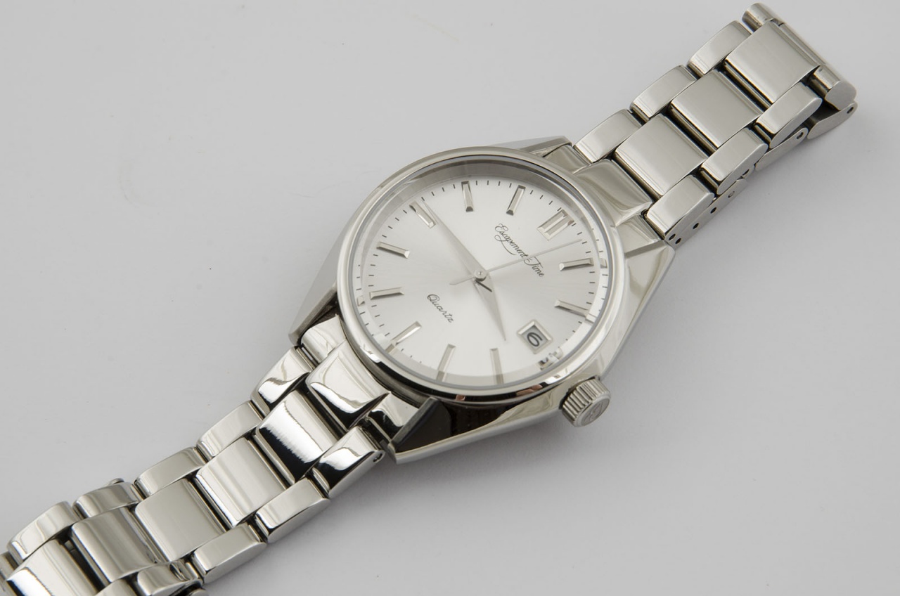 Часы вживую очень светлые, особенно «светится» циферблат - на фото в полной мере не удается передать это матово-серебряное лучистое свечение. Стрелки и метки (метки – накладные) – полированные. Окошко даты тоже имеет обрамление из полированного металла. Вообще, сам корпус и браслет полностью полированные. Для меня это плюс, я люблю, чтобы все блестело и сияло, да и ухаживать за полированной поверхностью лично мне проще. У меня есть дремель с насадками и алмазные пасты разной гритности, так что восстановить полировку часов и браслета проблем не составляет. А вот сатинирование качественно восстанавливать у меня не получается.