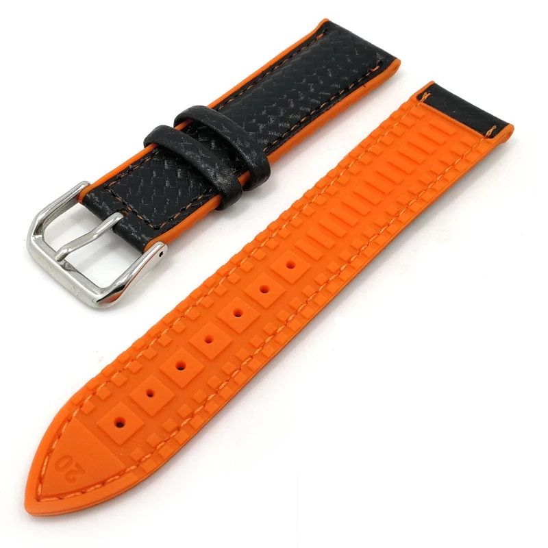 272,52 руб. 30%OFF | 18 мм 20 мм 22 мм силиконовый ремешок из углеродного волокна Кожа Защита от пота резиновый сменный браслет для мужчин аксессуары для часов оранжевый