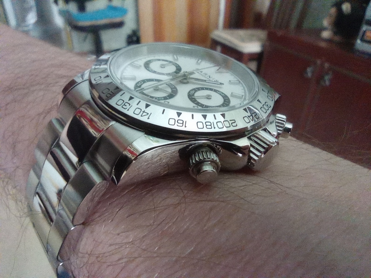 Привет уважаемым форумчанам! Долгожданный Parnis Daytona наконец получен сегодня на почте. Как по мне так идеальный. На руке сидит прям классно.
