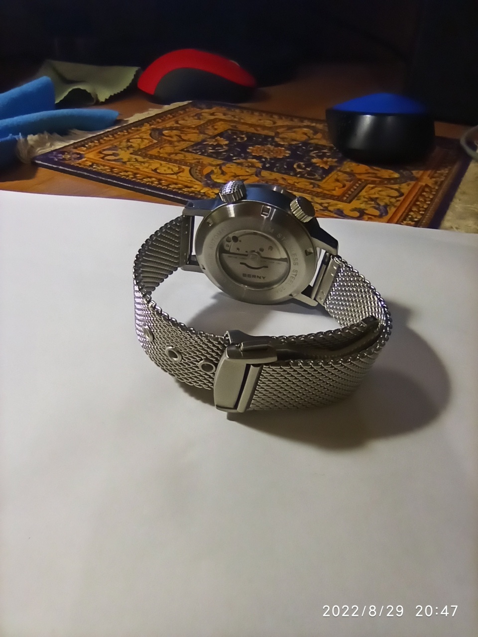 поставил сегодня браслет, штифты на винтах не для меня, во первых сразу исцарапал корпус, во вторых он (штифт) диаметром 1,3 мм и толще туда не вставить (не рассверливая корпус) а под этото браслет нужно минимум 1,6. и да, для моего запястья (17,5) застежка большая.