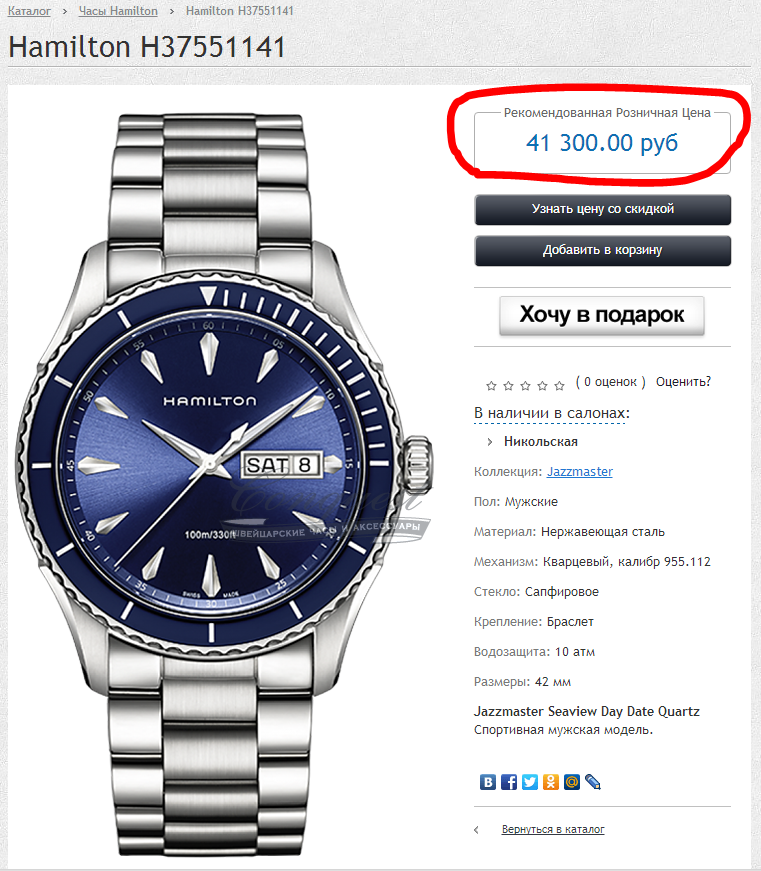 HAMILTON Jazzmaster Seaview Day-Date H37551141. Синий кварцевый дайвер / Браслет / d=42mm - Часовой форум Watch.ru