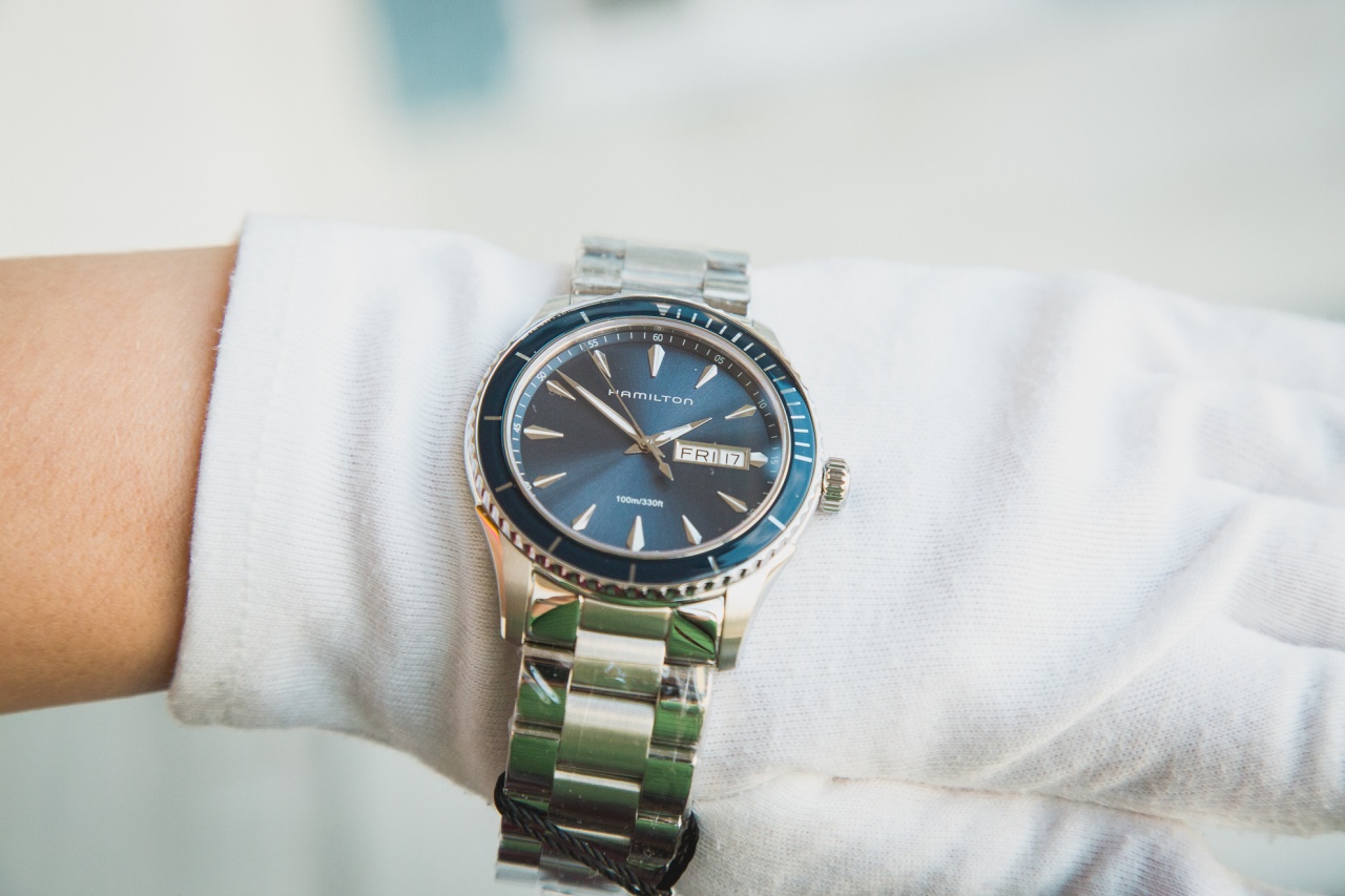 Jazzmaster Seaview – мосток между традиционным внешним видом моделей из линии Jazzmaster в сочетании с характеристиками часов из коллекции Khaki. Сочетание браслета с корпусом и вращающимся безелем, вдохновленный компасом, напоминает навигационную тему.