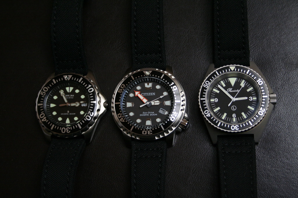 Japan: Seiko Sumo Chronograph / Citizen Nighthawk Radio Controlled / Seiko Sportura Chronograph Swiss: Hamilton Khaki Air Race Chronograph / Victorinox Ambassador Automatic