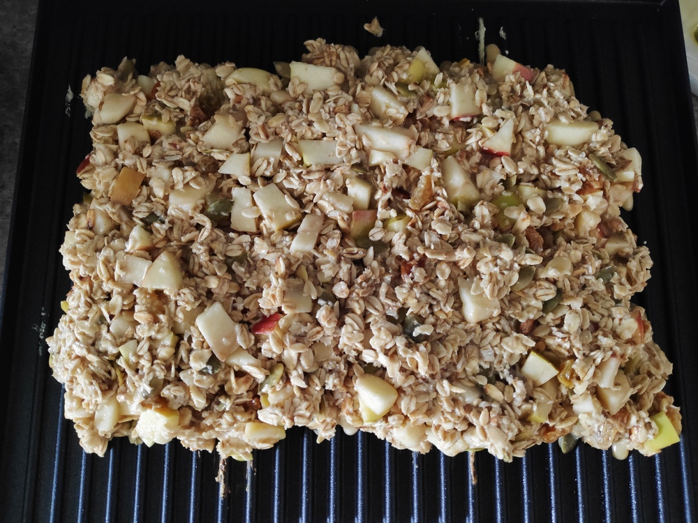 Поэтому просто смешиваем, даем минут 10 постоять, затем вываливаем на гриль и получаем вот такую блевотину на гриле