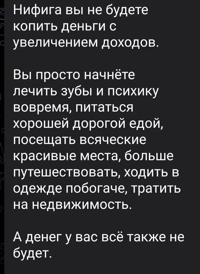 Я экономист ни какой, как появляются свободные тити - мити, сразу большую часть под матрас, оно как то спокойнее, но ...Вот у нас в организации водители, если получают меньше 150 , сразу начинают ныть и обещать свалить, а некоторые даже валят. Возраст как раз такой, как в опросе, причем всех знаю, все их семьи и всех ихних жён . Их к какому классу причислить ?