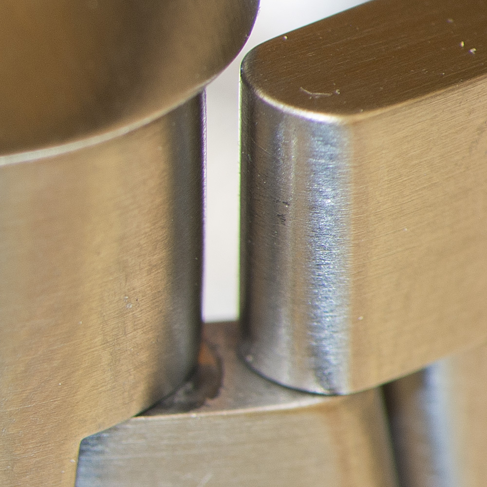 Торцы в том же сатине. Ребра вполне ровные, без завалов. А вот внутренние части браслета обработаны кое-как, плюс, сказывается нагрузка первого звена, несущего на себе воздействие не легких часов: