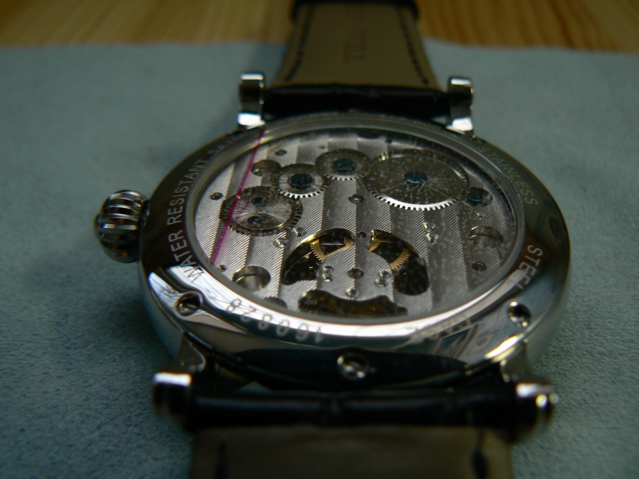 Скажу сразу, ничего такого сверхвыдающегося я в этих часах не заметил. Несмотря на наличие турбийона, это обычные китайские часы, с обыкновенным китайским корпусом, и обычной китайской отделкой механизма (а-ля «на отцепись»). Китайцы и тут не могут удержаться от желания хоть чуть-чуть, но обмануть, пусть и в мелочах. И теперь я понимаю, почему швейцарские турбийоны стоят на порядок дороже китайских, соответственно их уровня отделки деталей, подходу к материалам корпуса и аксессуаров. Сравнивать китайские и швейцарские часы с турбийонами – неблагодарное дело. Это несравнимые вещи (по крайней мере пока).