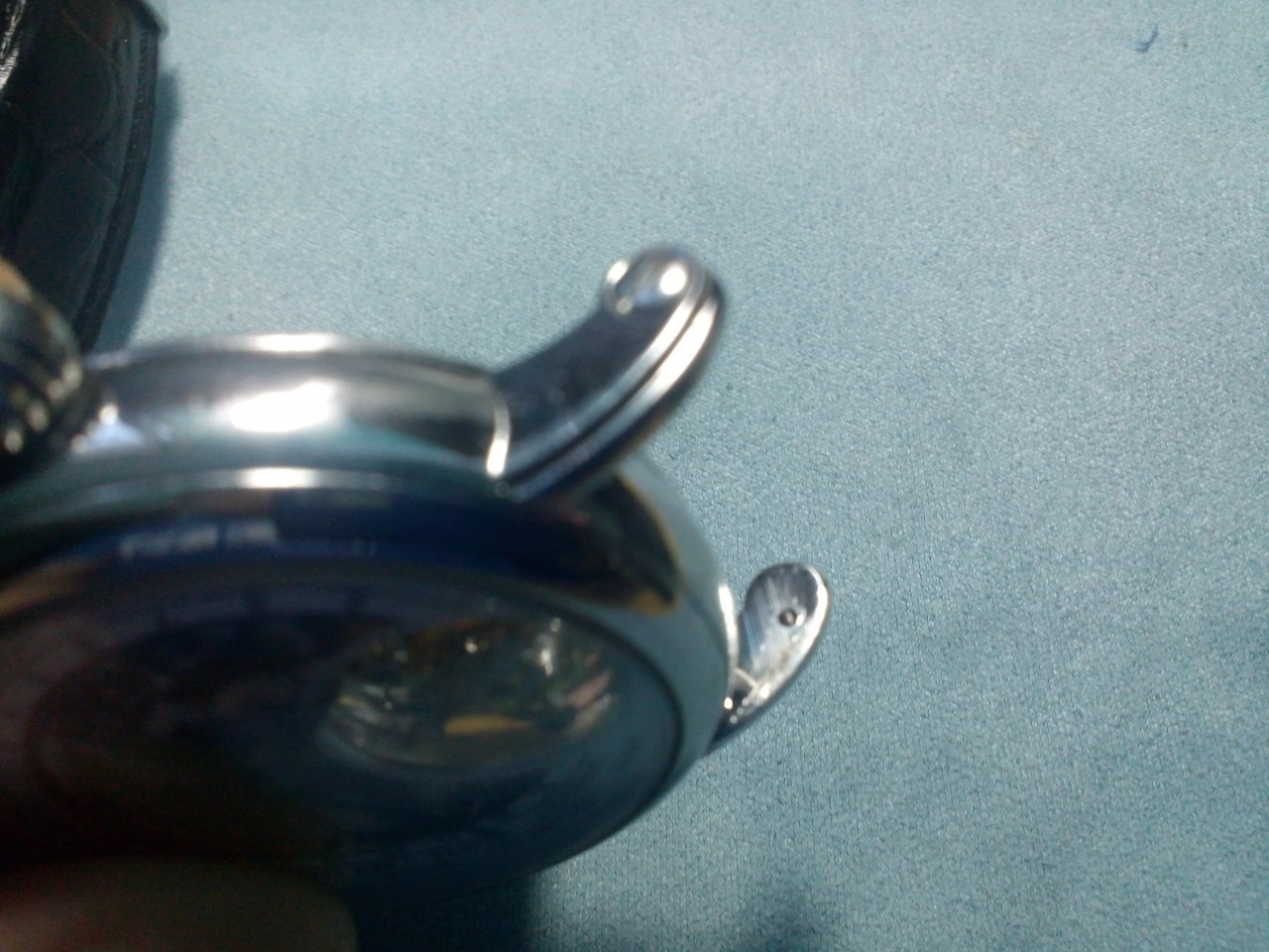 Третий момент является для меня частичной загадкой. Итак, судя по виду ушек на корпусе часов, ремень, якобы, должен крепиться с помощью штифта и винтов. Опять таки, я не тешил себя иллюзиями, и вполне был готов к тому, что это окажется бутафорией. Так оно и оказалось. Ремень там на обычных «пружинных» шпильках. Но… К моему удивлению, головки «винтов» оказались не гравировкой. Они ВРАЩАЮТСЯ. С помощью часовой отвёрточки их можно крутить вправо и влево. Однако они не вкручиваются, и не выкручиваются. С обратной (внутренней) стороны ушек обычные засверлённые отверстия для шпилек, и всё. Загадкой является тот момент, КАК китайцы реализовали функциональность (вращение) этой детали корпуса без резьбы? Как такое технически возможно? И с какой целью? На мой взгляд, было бы гораздо проще сделать полнофункциональные винты и штифты. Либо же не делать ничего. Да, не перестают удивлять китайские умельцы! Прежде всего абсурдной логикой.