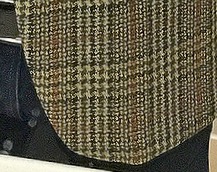 - Пиджак в клетку и руьашка в клетку/полоску. Носки по-моему тоже цветастые.