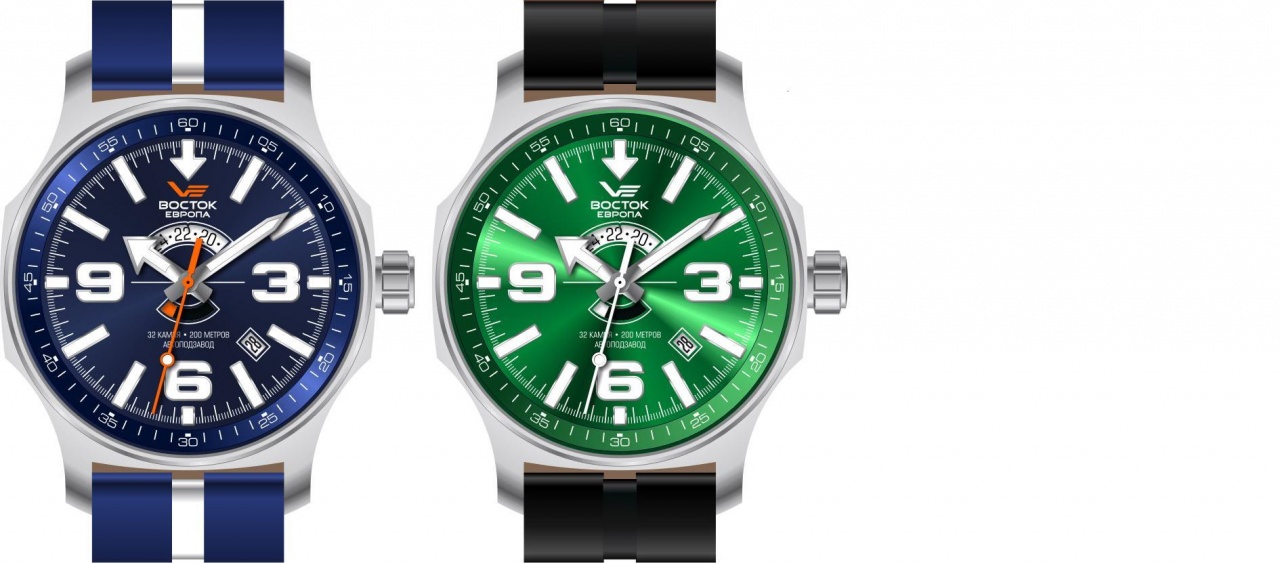 Циферблат: темно-синий или ярко-зеленый с CDподобной лучевкой (не знаю как это правельно назвать) и всеми надписями на русском языке.