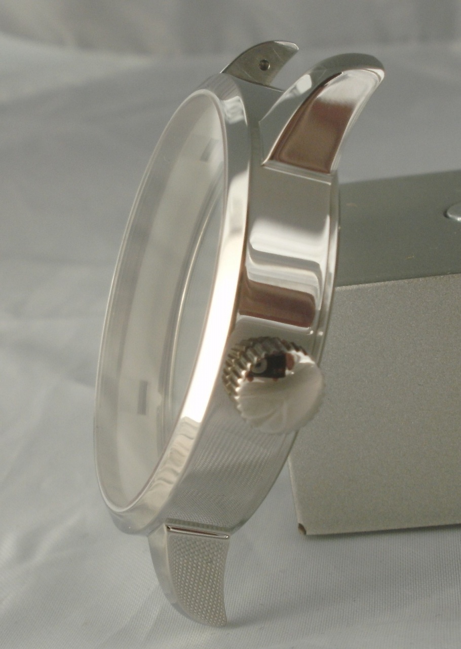 Новый циферблат сделан из старого, предварительно подогнанного по размеру. Если не ошибаюсь у тонкой Молнии цифер диаметром около 39мм, новый корпус под цифер диаметром около 38мм.