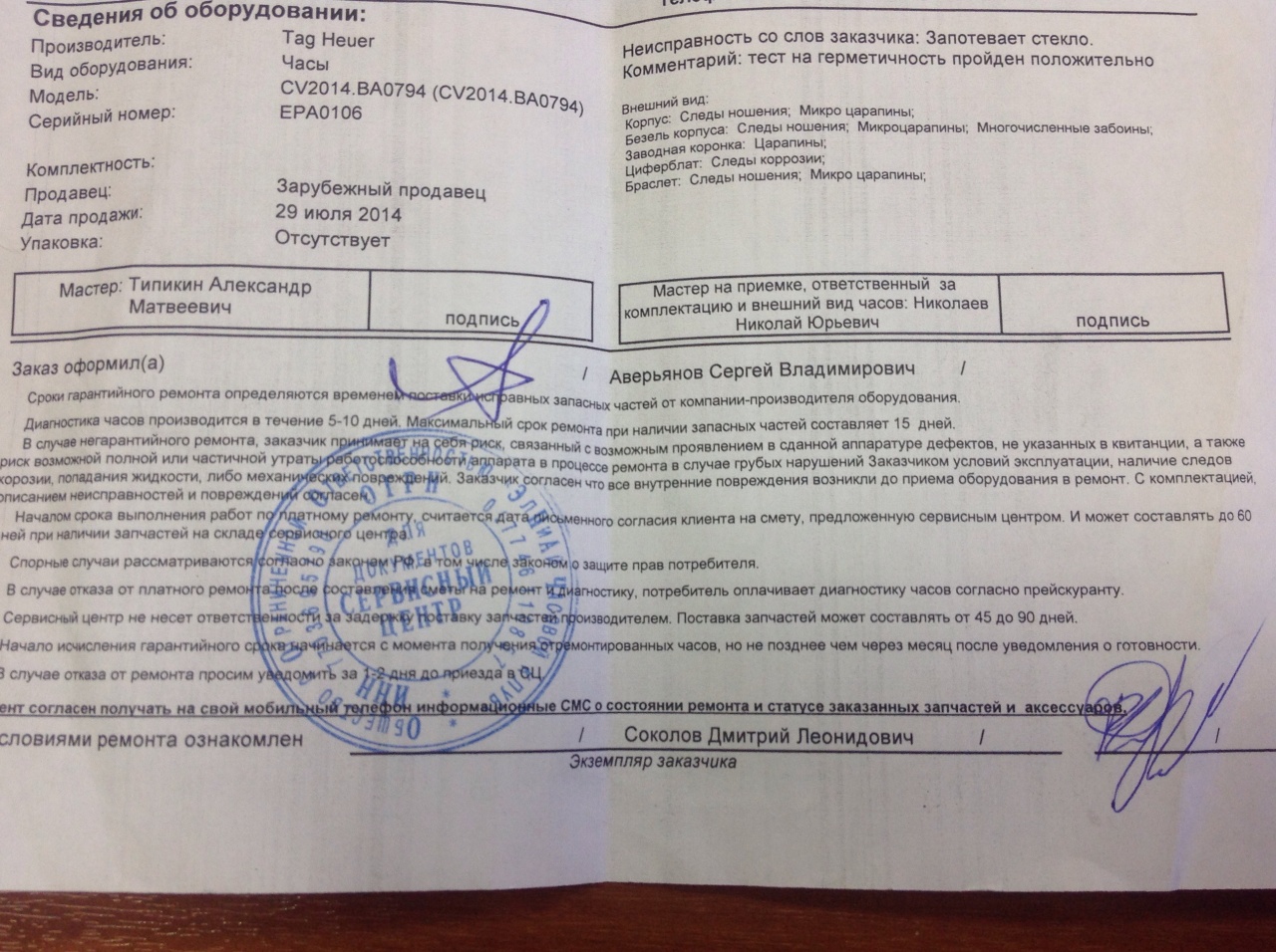 История с приемом часов заслуживает отдельного внимания. При описании часов претензий к механическим повреждениям не было, как у предыдущих форумчан, правда мне вписали в описании некии "забоины" на безеле. Я удивился, но спорить не стал. Отказывать в гарантии по этой причине во всяком случае с хода мне не стали. Мастер при мне провел тест на герметичность часов, после чего выдал интереснейшую фразу: "Часы абсолютно герметичны, но конденсат ушёл!". На вопрос как из закрытой банки под внешним давлением может исчезнуть вода, ответил, что диагностика покажет. Это сразу убило мои надежды на гарантийный ремонт. К тому же, когда я решил оставить у себя распечатку результатов теста на герметичность сказали, что это для них, а мне могут сделать только копию, чего естественно не сделали. Думаю меня постигнет судьба предыдущих форумчан, коих обвинили в нарушении эксплуатации часов, правда в Carerra нет Закручивающейся головки.