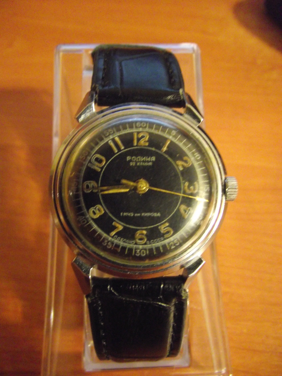 У меня черный (хром. корпус формы -как из поста 10887) похожий ПЧЗ (с ромбиком ПЧЗ на цифере), только стрелки заполнены белой краской. Вот как на первом фото, только без светомассы (