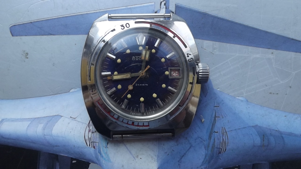 Первый раз вижу синюю министерку в раннем корпусе. Ей бы еще хром. головку для полного счастья. До этого встречались только зеленые и черные. Осталось найти красную. Слышал про синюю министерку с позолоченными индексами в позднем корпусе, к которой идут позолоченные острые стрелки, но вживую не видел.