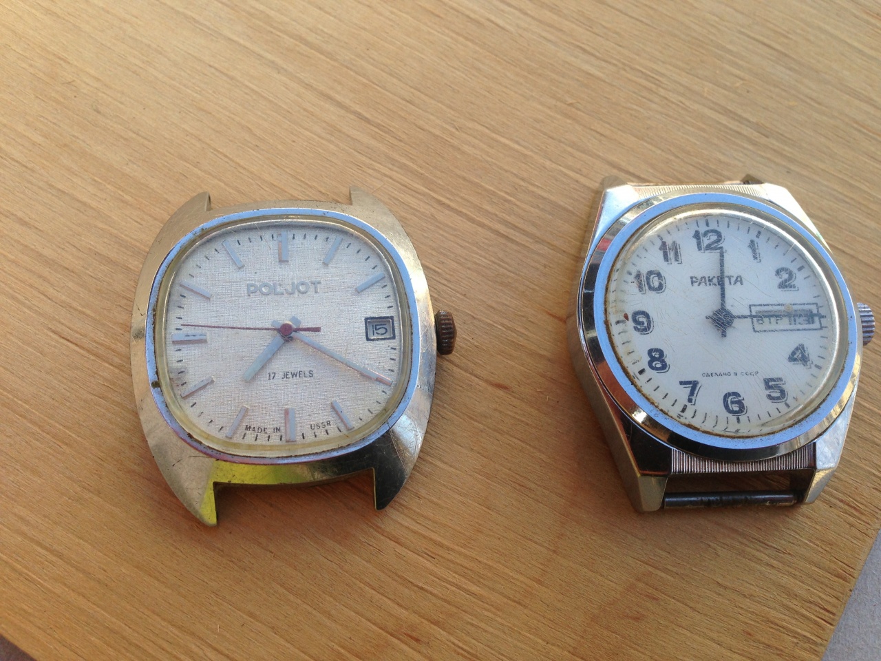 Доброго дня, коллеги! Сегодня на толкучке встретил вот такие часики. Оба на ходу, но состояние плачевное. Прошу прощения за фото, т.к. делал я его непосредственно с "витрины" продавца. Увы не знаю ничего о содержимом изделий, прошу Вашего совета стоит ли мне их приобрести по сотке за штуку, учитывая дальнейшие расходы связанные с их восстановлением? Заранее благодарю за любую информацию по ним и за Вашу оценку целесообразности приобретения.