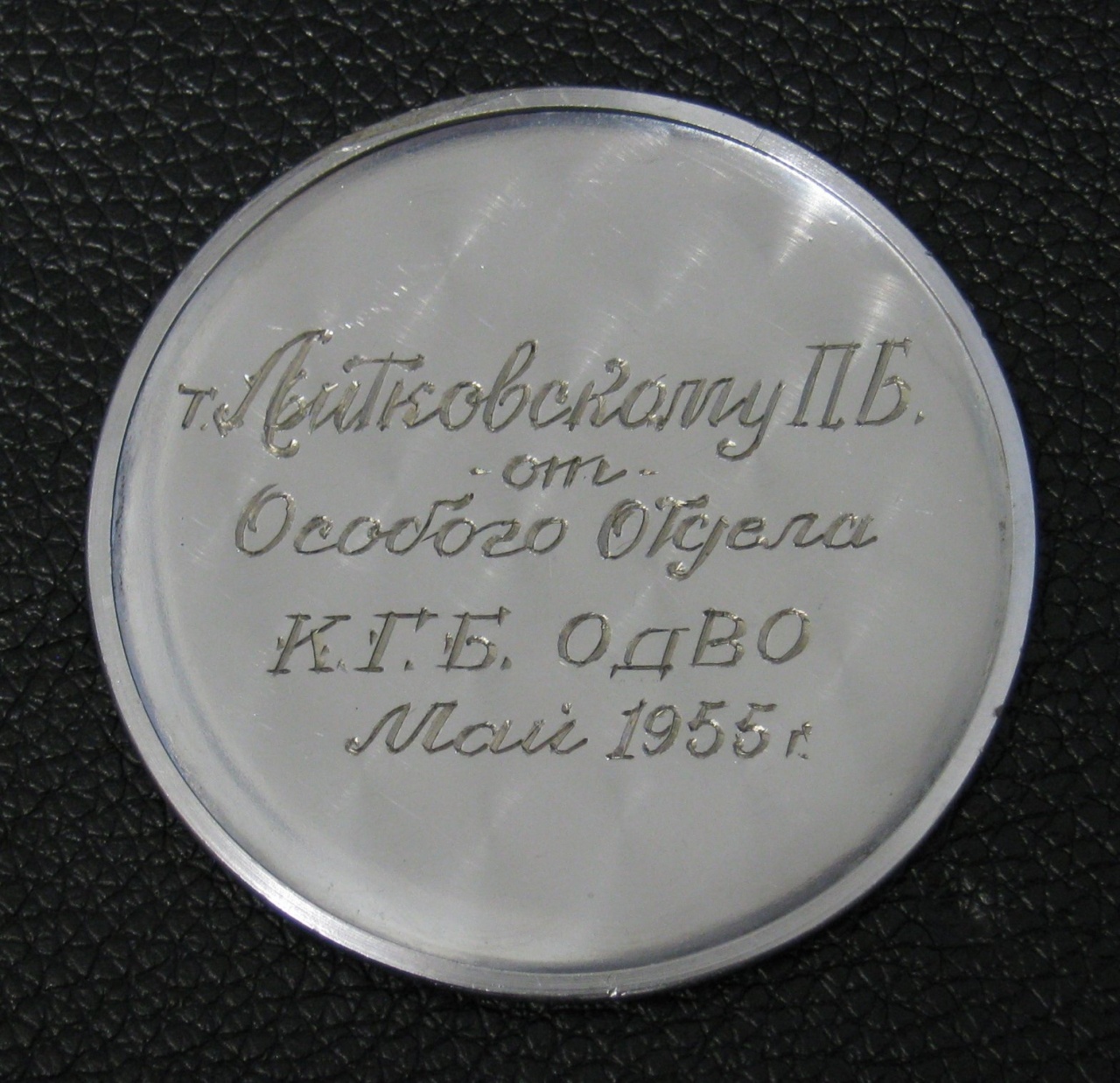 И еще такие мысли: "своего" офицера, на что намекает "секретная" надпись внутри крышки, КГБ наградил бы скорее всего чем-то классом повыше чем обычная "Молния". А для "обычного" гражданина и/или солдата-срочника погранвойск дарственную надпись сделали бы с лицевой стороны крышки, с указанием за что, типа "помощь в задержании нарушителя границы СССР" и вероятнее всего было бы написано от "Комитета Государственной Безопасности СССР" полностью.