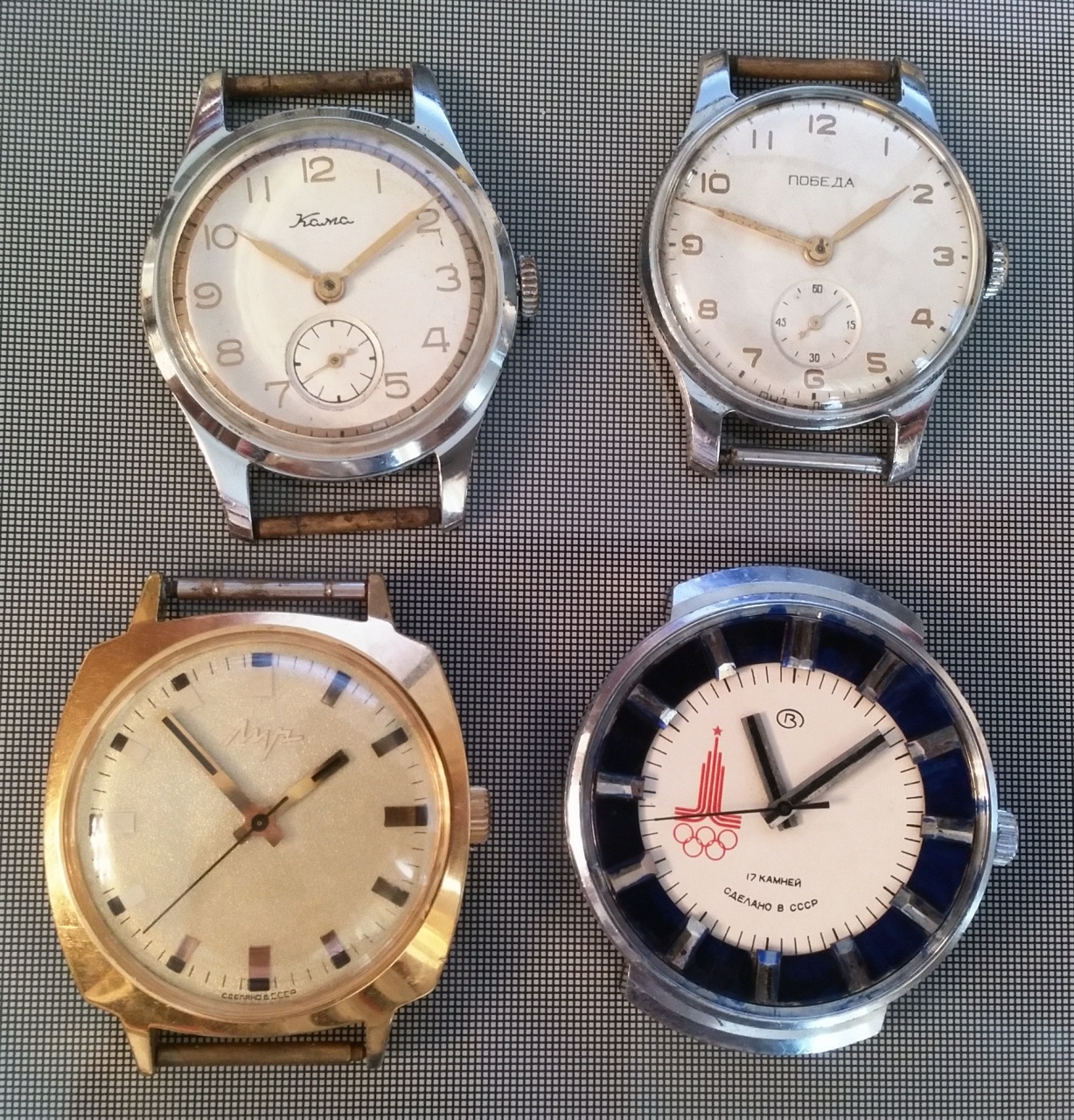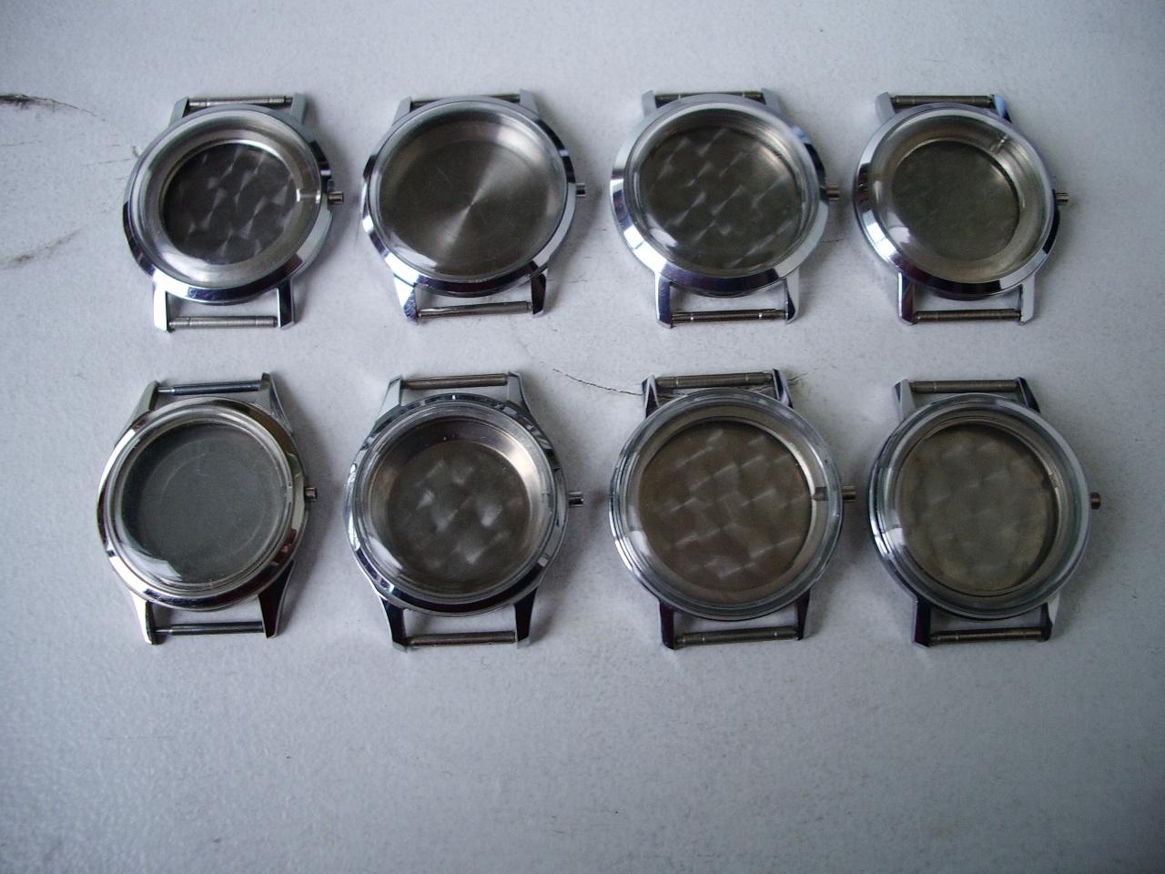 . Короче, зашел в гости к знакомому часовщику с коим не виделся сто лет, зашел не один, прихватил изделие белорусских мастеров под названием "Бульбаш" заряженное помимо перца еще и медом, как гласила этикетка. В итоге часового обсуждения внешнеполитических и внутриэкономических коллизий, от "Бульбаша" остался только один из заявленных ингридиентов в виде перца, и то только потому, что через горлышко не проходит. На прощание мне было предложено принять в дар нижепоказанные нулевые корпуса в сборе со стеклами и крышками. Все новенькое, муха даже рядом не пролетала. Проявив слабость и взяв их теперь думаю, где доставать все остальное, особо это касается стального Полета и прецизионного Востока