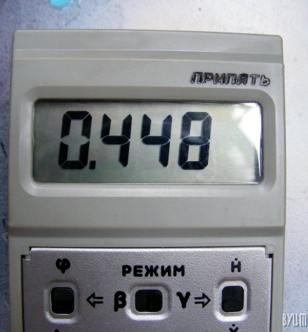 0.45 мкЗв/ч (а я так понимаю, что на дозиметре указана мощность эквивалентной дозы?!) - это трехкратное превышение фонового значения (по относительно чистому северо-западу России оно состовляет 0.14, для Украины не знаю), в принципе 0.30 мкЗв/ч - это не криминал! Примерно такое значение (0.30-0.40 сейчас нет под рукой соответствующей литературы) имеет место на борту самолета совершающего перелет на высоте 8-10 км...я просто к тому, что мы просто часто не задумываемся над этим и не берем с собой дозиметры в самолеты, в ренгеновские кабинеты, когда идем куда-ниб в горы и т.д.