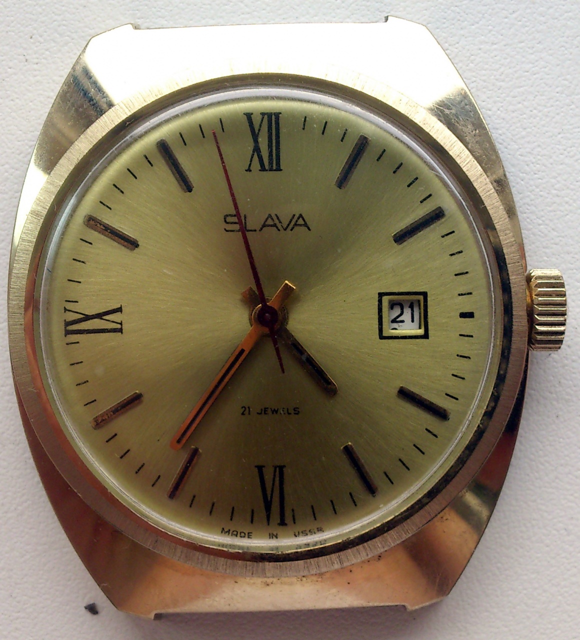 Пришел сегодня забирать вот эту Славу из мастерской, была найдена в кучке останков часовых у товарища, баланс отсутствовал, восстановили, на ходу. Посажу на каучук черный и буду носить.