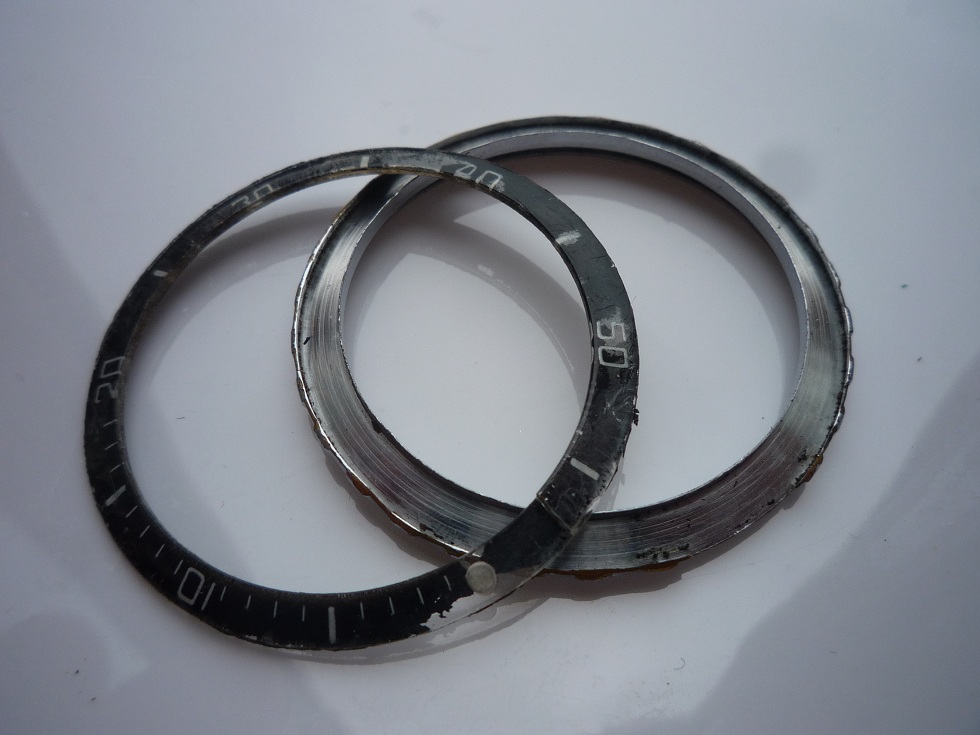 Сам безель - латунь, боковые стеночки тоненькие, отчего у многих из тех что я видел , отсутствует часть этой самой боковой стеночки. Вставка - пластик прозрачный , крашеный с обратной стороны -цифры белой, поверх них фон черной краской . Вот так вотНу и, фото в разборе
