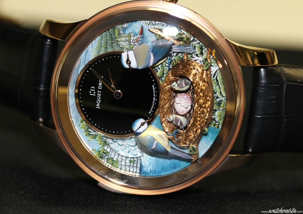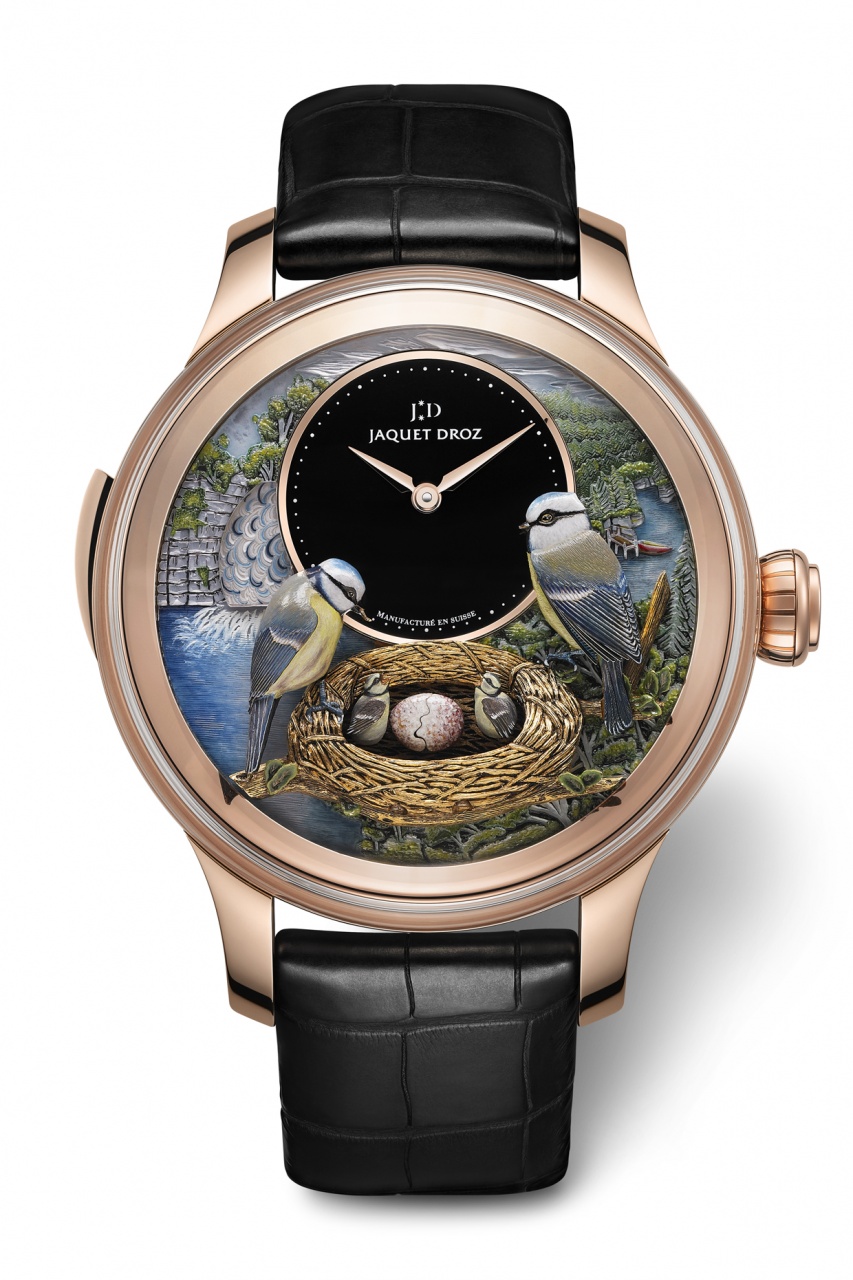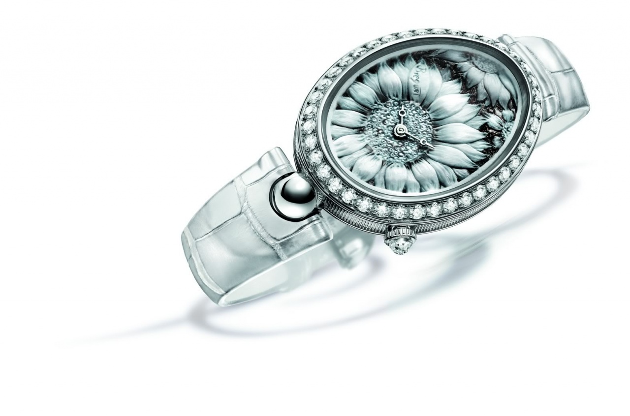 эмаль, эмальеры стараются достигнуть определенной глубины цветов. Соблюдение строгой последовательности в работе — необходимая часть искусства, позволяющее достигнуть безупречного результата. После нанесения каждого цвета эмали, циферблат помещают в специальную духовку с температурой около 800 — 900°C. После чего, перед финальным обжигом, вся поверхность циферблата покрывается специальным раствором, который обеспечивает прочность и блестящий глянцевый эффект, который дает дополнительный визуальный объем флористическому дизайну. Змея аккуратно помещается в центр циферблата, как будто готовая полсти между листьев, что создает необыкновенный живой эффект.
