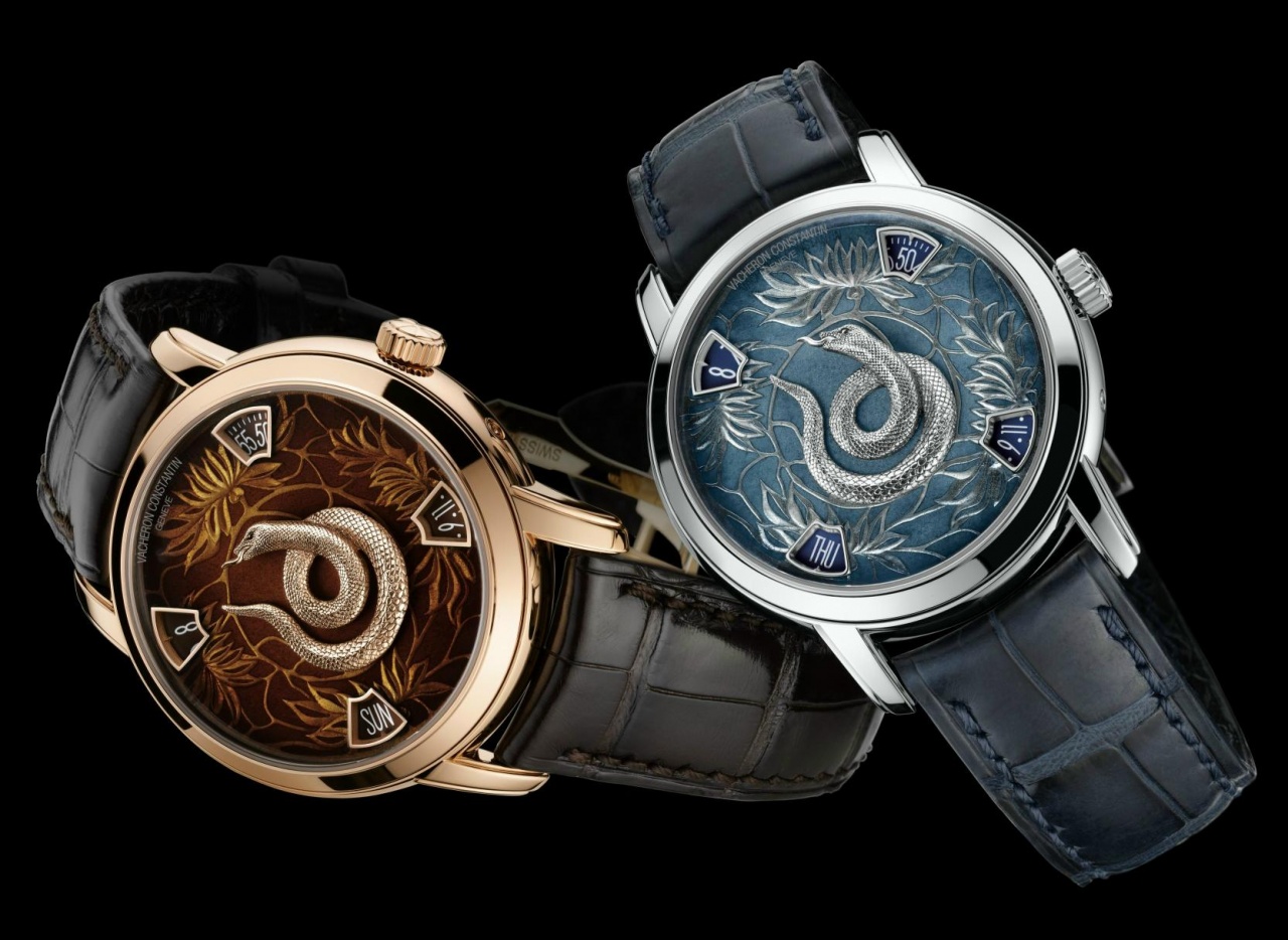 Китай – страна, с которой часовой дом Vacheron Constantin установил дружеские отношения в 1845, известна внушающим числом открытий, в числе который и изобретение бумаги. Уникальное искусство вырезания фигур из бумаги Цзяньчжи (Jianzhi), которое сегодня входит в список объектов UNESCO Intangible Cultural Heritage, являетсвя «отзвуком» популярного искусства резки по бумаге Scherenschnitt, рожденном в Швейцарии. Задача, которую Vacheron Constantin поставил и воплотил через часовое искусство, благодаря умению и опытности часовых мастеров - повторить безукаризненность работ Цзяньчжи в часовом дизайне. Граферы и эмальеры кропотливо работали над возможностью создания к году Змеи моделей, исполненных в розовом золоте или платине и выпущенных в 12 штучных ограниченных сериях только для бутиков Vacheron Constantin.