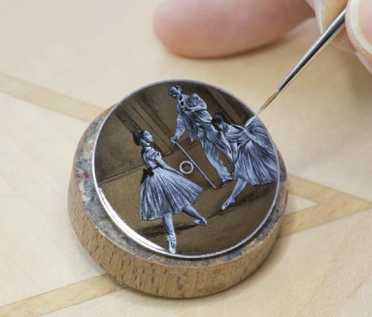 Перламутровый циферблат украшен исполненными вручную живописными миниатюрами, воспроизводящими по одной из трех полотен о суднах Ост-Индской компании, которые входят в коллекцию Лондонского Национального морского музея в Лондоне. Индикация времени осуществляется посредством вороненых стрелок часа и минуты, вынесенных на боковой циферблат, расположенный в позиции 9 часа. Секунды индексируются центральной секундной стрелкой, но следует отметить, что эта функция модифицирована усложнением "мертвой секунды" ("true-beat seconds"), весьма актуальным в XVIII—XIX веках. Оно использовалось в морских хронометрах и позволяло более точно устанавливать географическую долготу.