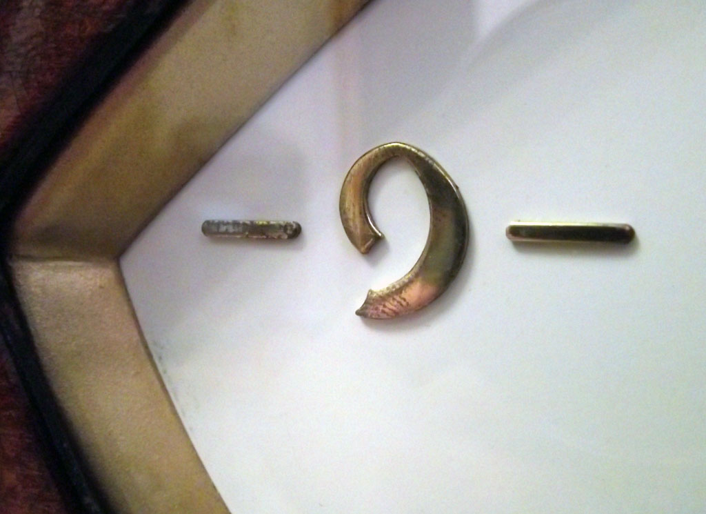 Это, наверно, и объясняет хорошее состояние часов - ими просто не пользовались. На ножках даже сохранились матерчатые наклейки опримистичного розового цвета.