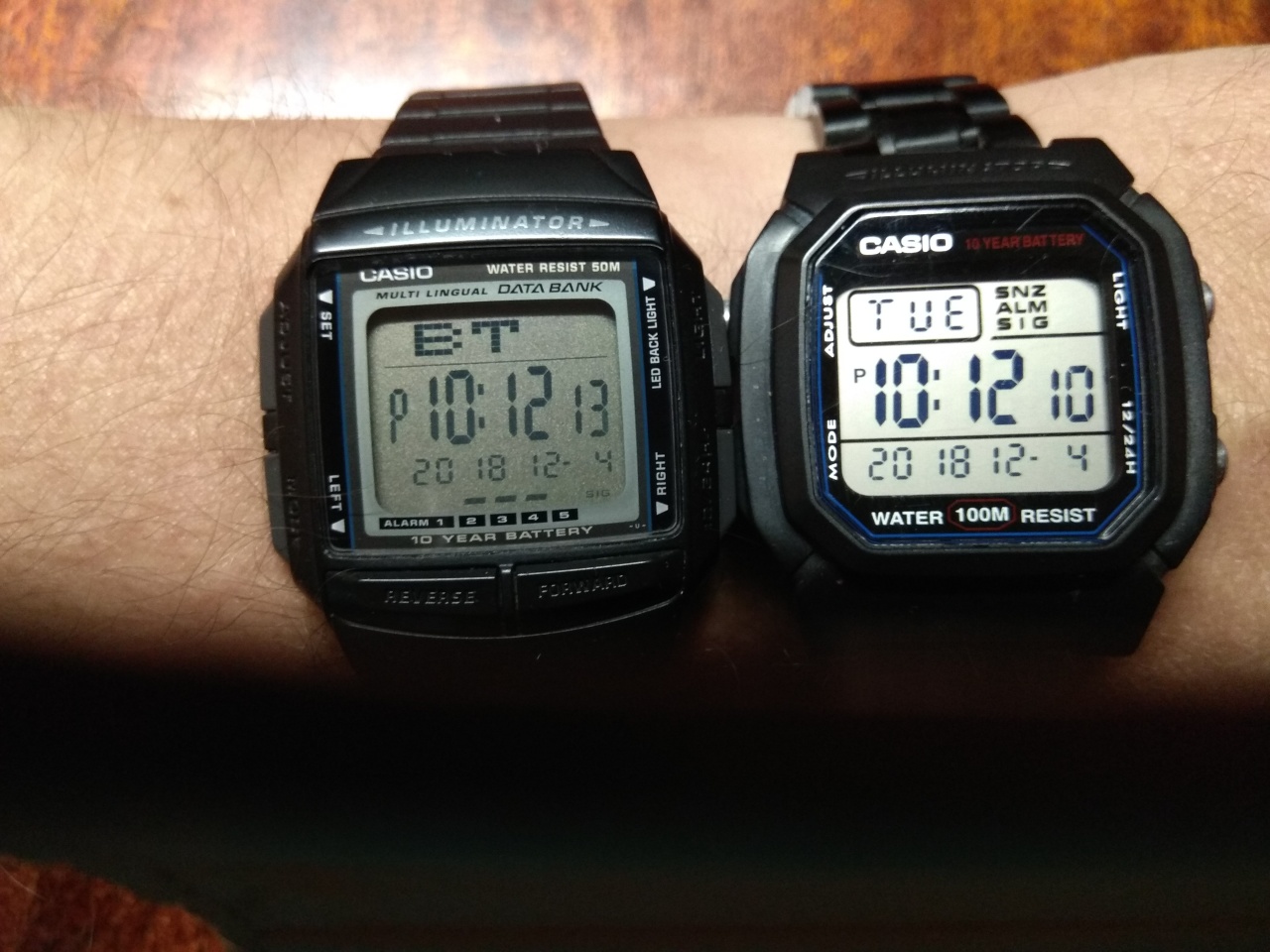 На самом деле DB-36-1AVEF выглядят не так основательно как на фото. Они действительно небольшого размера и с тонким ремешком, очень лёгкие. Даже на моей небольшой руке смотрятся мелковато. Да и экран у них с сероватым оттенком и контрастность цифр не очень (ну это может мои такие экземпляры). А вот DB-E30-1A смотрятся действительно очень хорошо и по величине и по внешнему виду. Очень гармоничные часы и имеют свой шарм.