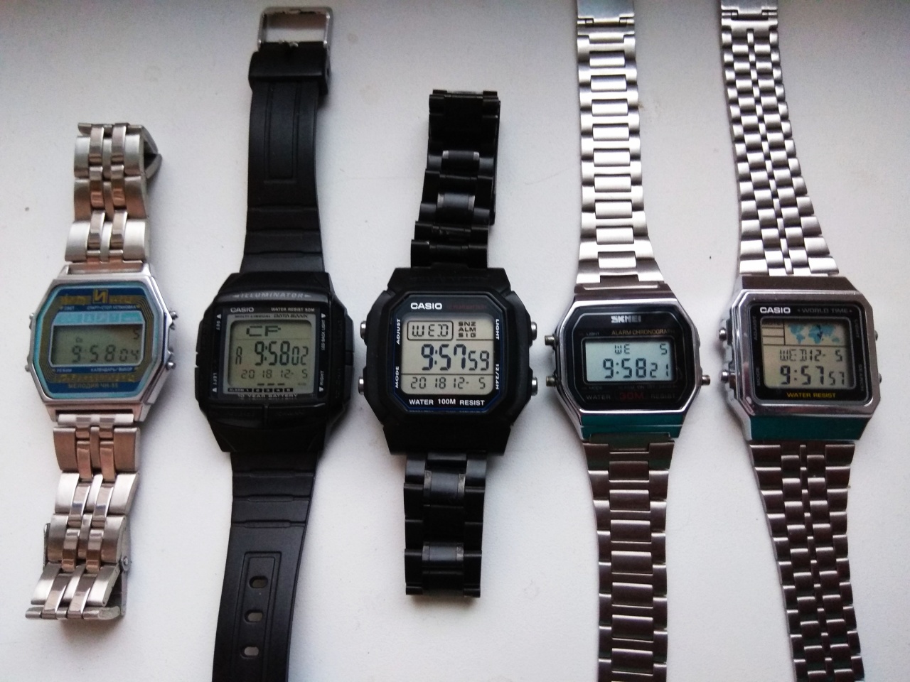 Я 42 года уже ношу часы. За это время у меня побывало около 40 различных часов. Электронные (с цифровой индикацией) из них чуть меньше половины. Прочитав восторженные отзывы купил W-800 и ... ничего особенного. Не понимаю массового восхищения. Сегодня даже сделал модернизацию своих W800 и добавил 5 будильников и таймер. Таймер, да полезная вещь, но 5 будильников полезность сомнительна, так как для будильников 2-5 нет индикации включения! Разумеется, можно изменить показания и знать, что при этом будильник будет гарантировано включен, а потом нажать ADJUST и выключить будильник. Но это не удобно! Надо было мне 3-ю сверху перемычку не запаивать и добавлять только таймер...