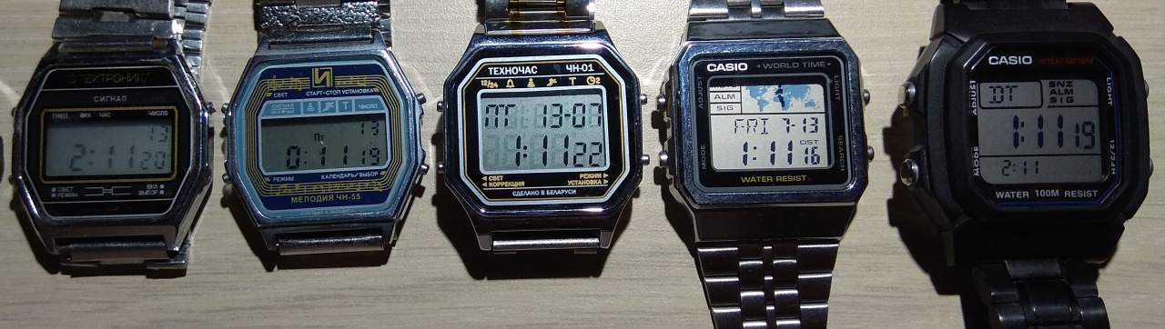 Что касается контрастности. Вот фото некоторых часов которые делались в этом году. (W-800 на 5-ти фото из 6-ти, DB-36 на 2-х) Контраст у W-800 отличный! Но только если не прямо смотреть на них. Интересно, что самый лучший контраст, что я видел и отражающая способность у китайских дешевых часов. Видел ещё в магазине часы (не запомнил марку, около 3000 руб) с оранжевыми вставками - четкий белый дисплей с прекрасной контрастностью. Если бы не оранжевые вставки купил бы. Жалко не сфотографировал. Отечественные (Белорусские) часы вообще не радуют дисплеями.