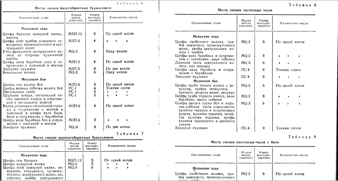 Потому - ШРУС-4 для пружин, жидкое "бытовое для швейных машин" для ветряка и моторная "синтетика" 5W40 для всего остального. Проверено - до следующего обслуживания (5-7 лет) часы выхаживают без замечаний, никакого вопиющего износа не наблюдается. Чего ещё надо?