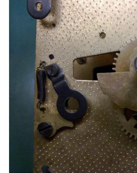 Я пилю в месте прилегания проволочки (из выравннной скрепки) к собачке в толщине собачки легкий паз глубиной примерно 0,5 мм для проволочки. Поскольку пружина постоянно прижата к собачке, выскочить из паза она не может, зато ее легко отвести в сторону и освободить собачку при необходимости спустить заводную пружину. Подвернется случай - сфотографирую.