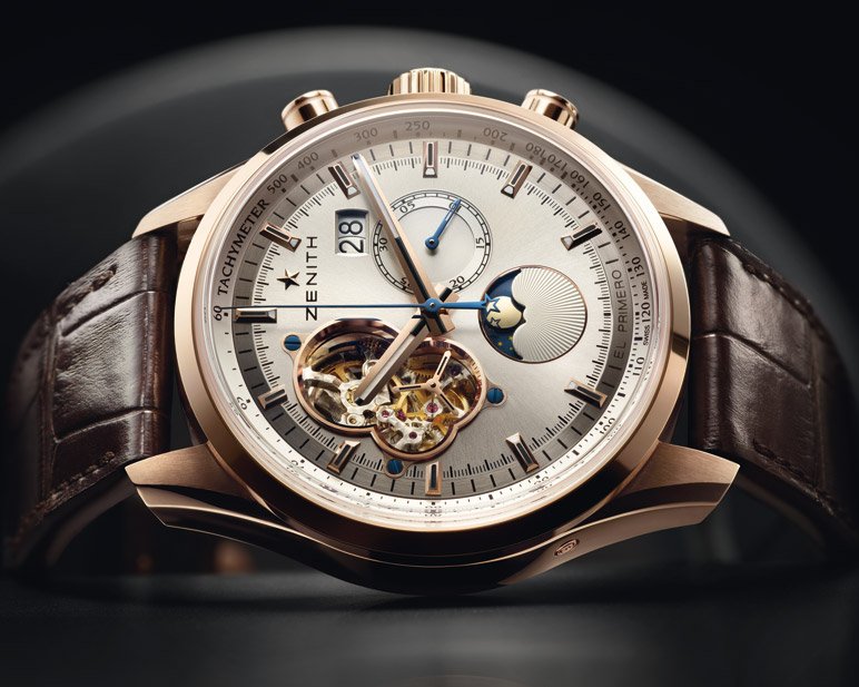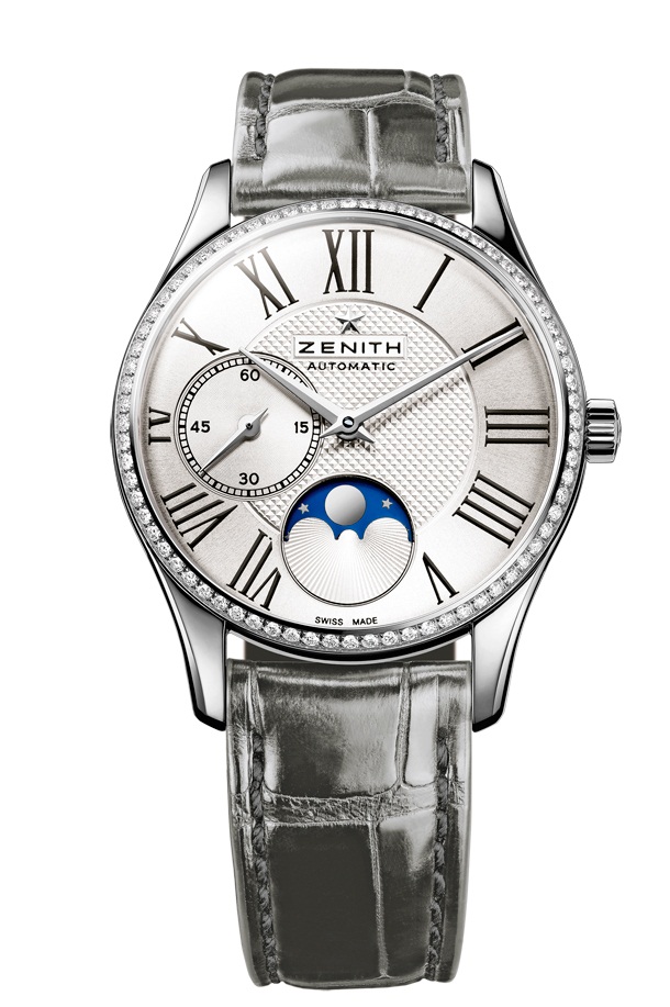 В положении «4 часа 30 мин» находится окошко даты. Мануфактура Zenith предлагает широкий ассортимент версий данной модели (с циферблатом цвета стали или голубого льда; c циферблатом из перламутра; с часовыми метками, украшенными бриллиантами; и даже с металлическим браслетом), среди которых прекрасные дамы смогут выбрать наиболее подходящую им по стилю.