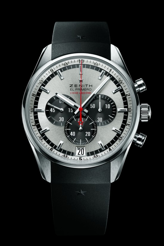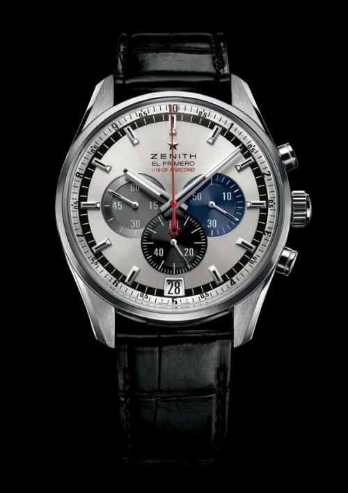 Хронограф с “прыгающей” секундной стрелкой, усовершенствованной специалистами компании Zenith оснащен дополнительной стрелкой, совершающей полный круг за 10 секунд, что значительно улучшает считываемость десятых долей секунды. Увеличенная в шесть раз разметка секундной шкалы на внешнем кольце циферблата – 10 секунд вместо 60 – гарантирует в высшей степени точное считывание 1/10 секунды.