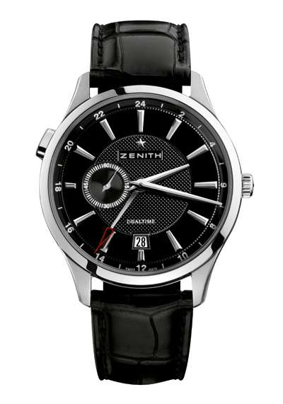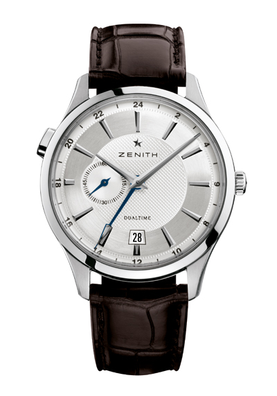 Модель Captain Dual Time пополнила коллекцию Captain от ZENITH. Она выпущена в двух версиях: с корпусом из нержавеющей стали с серебристым или черным гильошированным (в стиле Clou de Paris) циферблатом на коричневом или черным ремешке из кожи аллигатора или на браслете из нержавеющей стали.