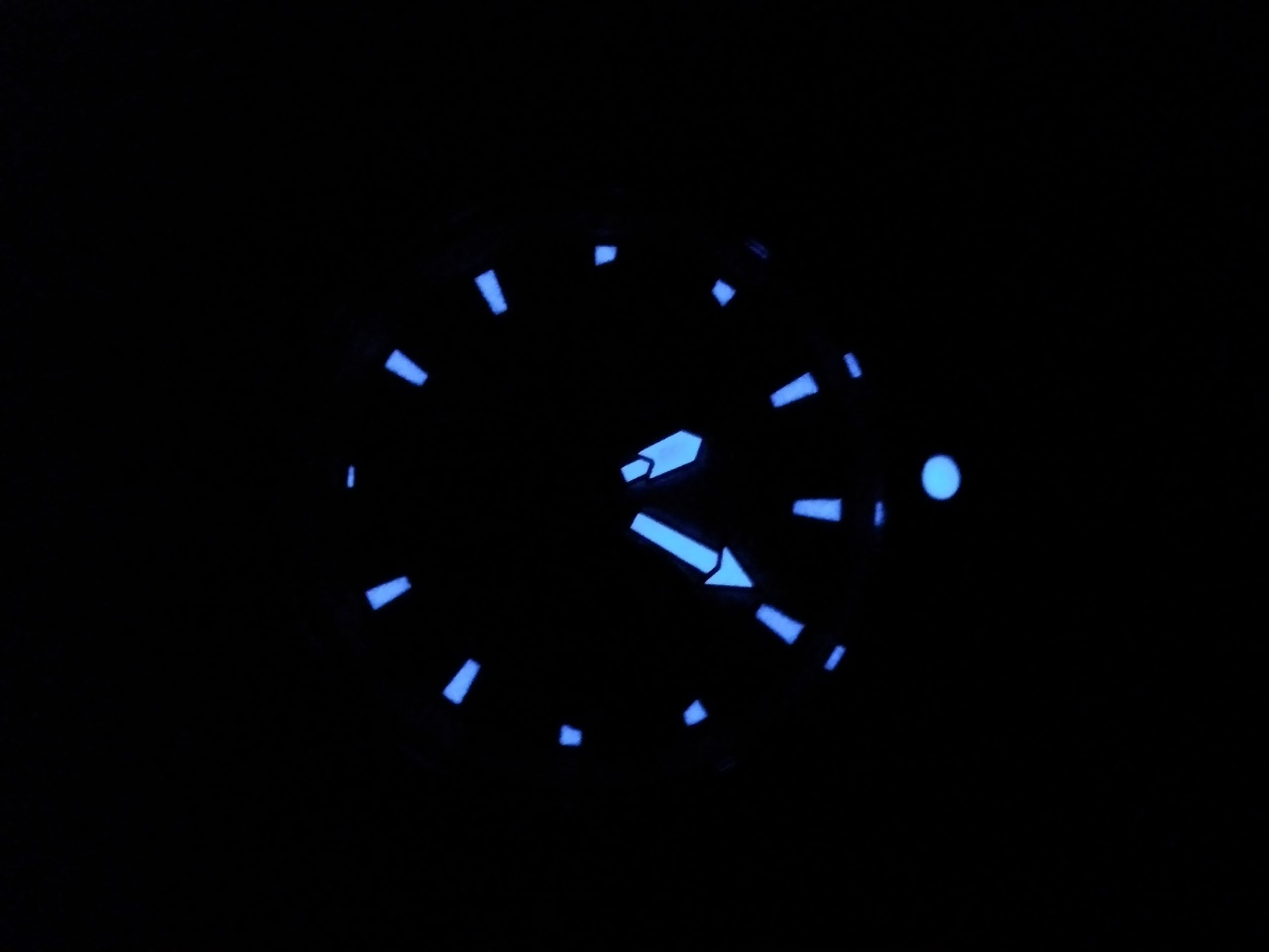 модель 15129, выпуск скорее всего 2011 год, подарок получил осенью 2014, вчера утром в порядке эксперемента положил на подоконник, с 9 до примерно 13 было прямое солнце, потом просто свет с окна, стемнело около 21 , различить можно было до 24 точно, потом спать лег, фото прикладываю, одно совсем в темноте , второе при включенном ночнике .