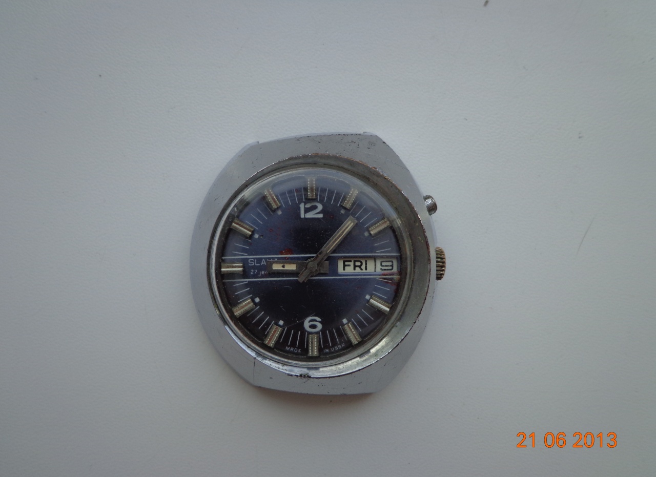 Не перестаю удивляться креативности часовых производителей СССР. Очень интересная асимметричная Слава с автоподзаводом. Там еще циферблат трехмерный. Правда, часы просятся на репассаж Кстати, обратил внимание, что тема трофеев на толкучке постепенно затухает. Видимо, все таки закрома родины не безграничны