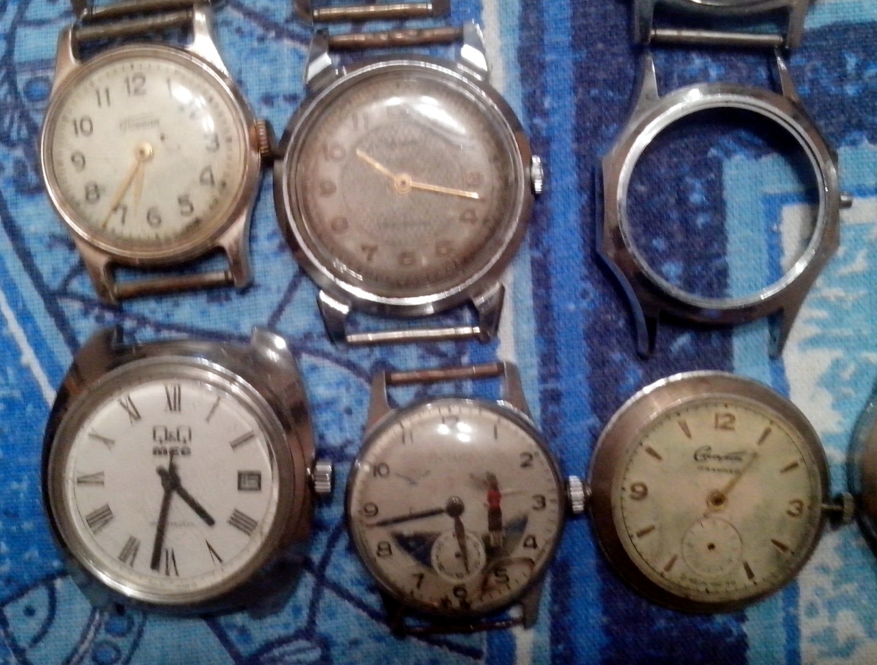 Это еще не все, не фотографировал пока кучку часов без стекол и стрелок с неопознаваемыми убитыми циферами, отдельно есть еще циферы, почему-то много Востока с нижней секундой (на 6 часов) малого диаметра. Это потом. Все фото залью в альбом отдельный себе, ссылку дам, смотрите, может что пригодится. И качество фото получше сделаю.