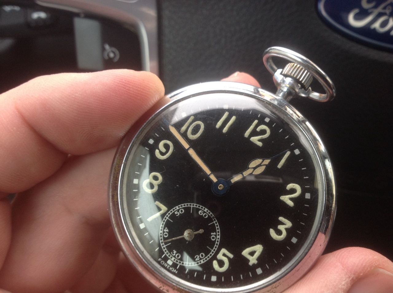 Уважаемые коллеги, есть еще такой трофей, но я, если честно, даже примерно не представляю кто это и откуда. По ноунейм механизму и надписи форейн на циферблате могу предположить, что это что-то американское, собранное в европе. Ингерсол или волхам, может? Буду благодарен за любую информацию.