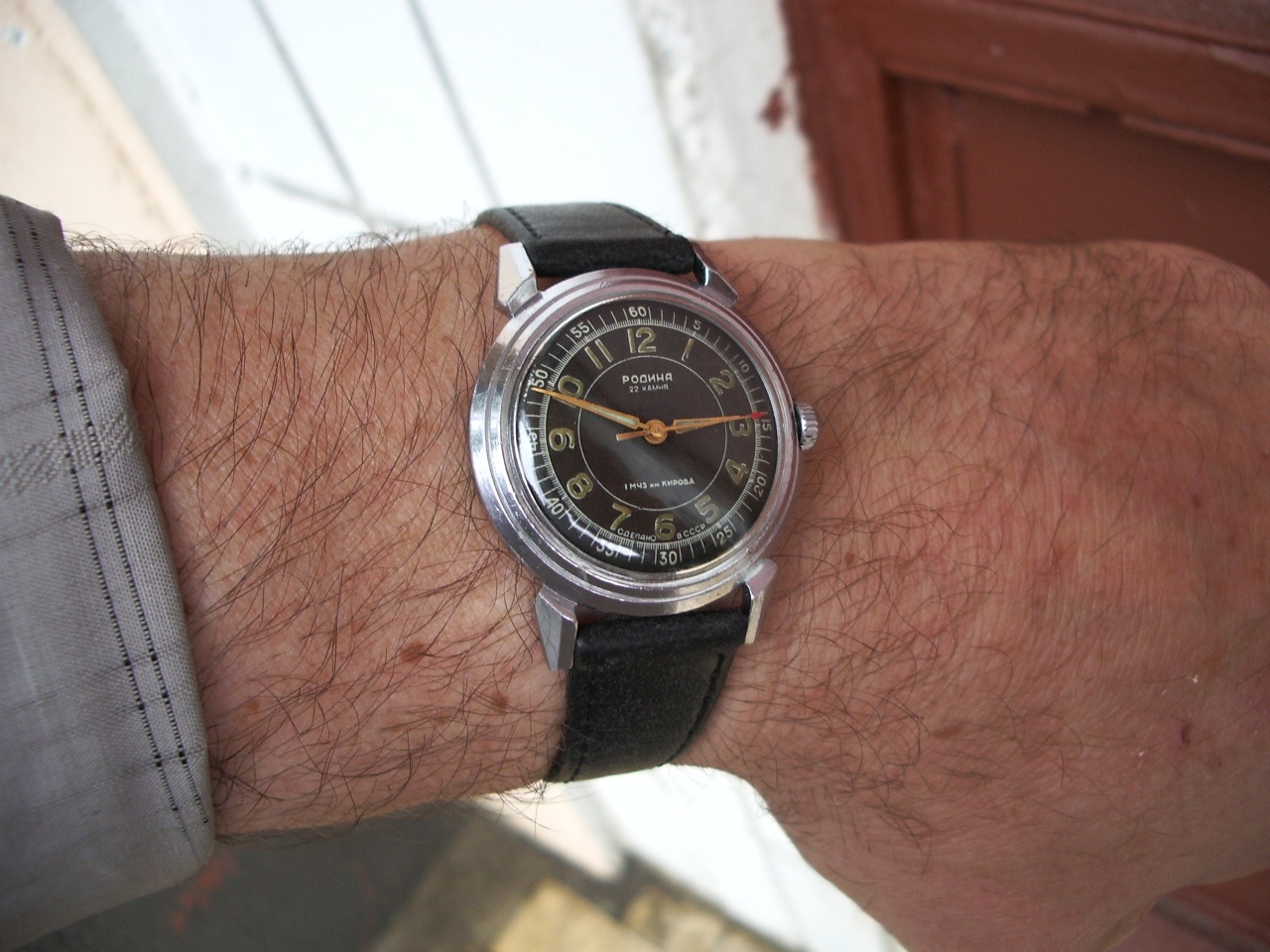 Два года искал такую Родину в приличном состоянии, всё безрезультатно. И вот в минувшие выходные купил парочку в разной степени убитости. От одной взял циферблат, от другой корпус. Остальные компоненты были давно.