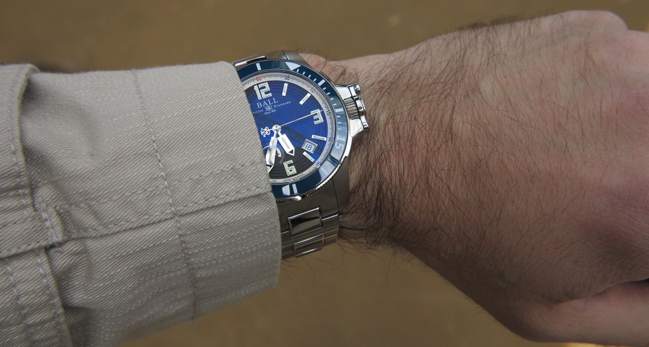 Визуальная толщина часов на руке (т.е. , если считать без «люка подводной лодки» и выпуклости стекла) составляет ровно 1 см, что не так уж много.