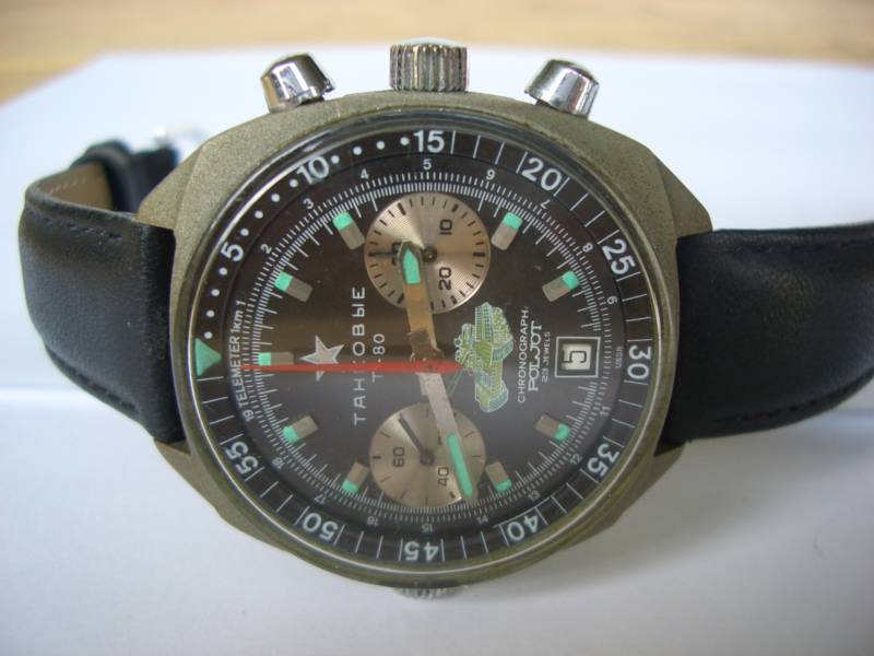 Обошлись в 1 500 руб., но состояние было намного хуже, стекло только минут 30-40 полировал, был полностью расстроен хрон, сломана ость колеса счетчика минут, погнута ось колеса хрона, изношен минутник и эксцентрик промежуточного колеса хрона, футор сек. стрелки хрона, заменены кнопки (были убитые), возился с ними 5-6 часов, ладно хоть донор есть. только зав. головка потерта, а так стало отлично. Часовщик у которого взял, сказал, что он пол года настроить не мог, похоже он там порядок навел, переломал все к чертовой матери.