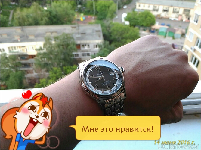Чтобы не оффтопить хочу выхожить фотографии своего Атлантика Волдмастера, лимиточку с номером 1; который надевал на свадьбу. Кстати, как накануне свадьбы 3 июня я его надел на руку, выставив отстование на 10 секунд (думал что за несколько дней выровняется в ноль, пока я его ношу), так он и сегодня 14 июня, спустя 11 суток так и идет с отставанием на 10 секунд. Надо было на ноль выставлять секунды.