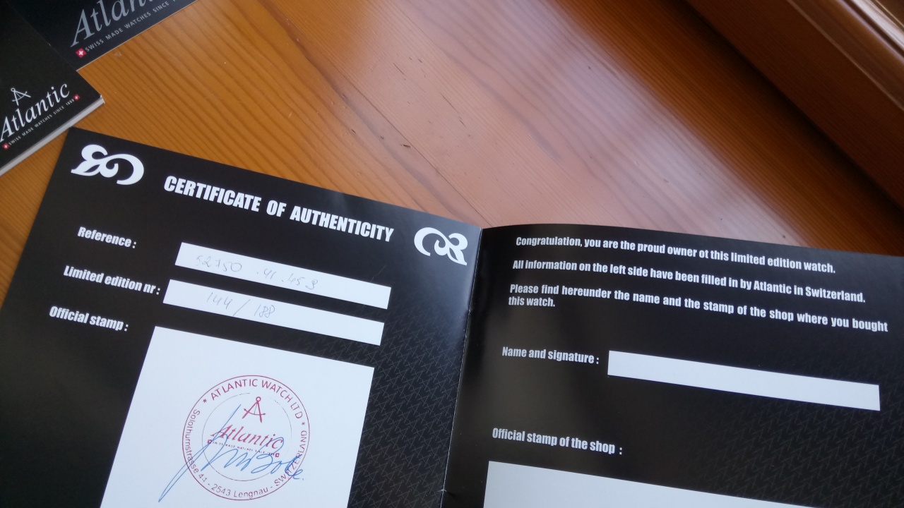 Atlantic". Аналог есть у уважаемого Push75 под №001/188 на браслете. Мои скромнее